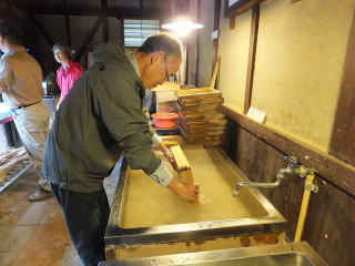 午後は紙遊苑で自分の卒業証書となる紙を漉いた。