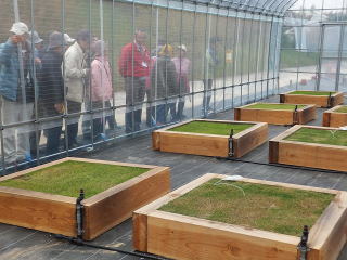 午後は大阪産(もん)の野菜の面白い商品開発の話や害虫対策の工夫など、実例と共に広大な敷地を見学させてもらった。