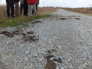 森と共に生き物も住み始めている。道路の真ん中に何箇所もの狸の「ため糞」