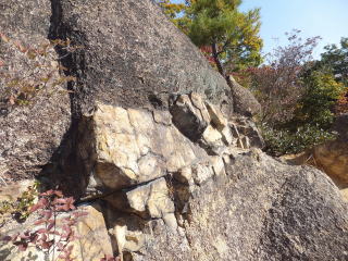 花崗岩の露頭に見える貫入(マグマが冷えた後別のマグマが入り込んだもの)