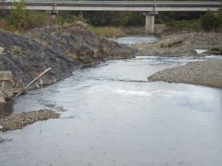 駅近くの石川の川原に下り約1500万年前のマグマが地表に出ているところを観察。水量が多く近くに行けずでしたが黒い柱状節理の岩石がよく見えた。手前の川原で花崗岩、礫岩、チャート、安山岩、1億年前くらいの緑石凝灰岩、砂岩など観察し、ごく普通に見える景色の中に長い年月にわたり石川が侵食して出来た何段もの河岸段丘の姿を見ました。