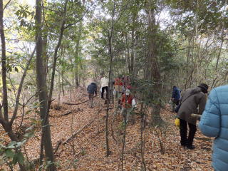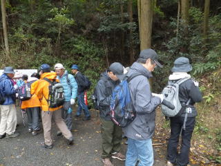 午後からは先生の案内で奥の谷の里山保全の現状を山を歩きながら、保全がされている山の中と放置されている山の説明を受けました。