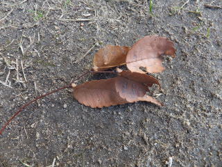 種を付けたケヤキは枝ごと葉を羽根代わりにして落ちる。