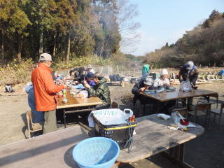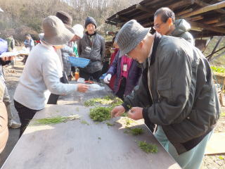 自分達で摘み、刻み作った粥の味は最高!風もなく、最高の摘み草日和です