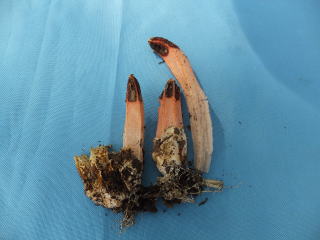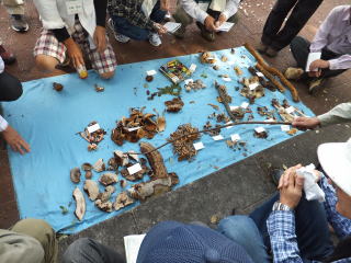 意外と乾いた地表に不安が拡がったが1時間半後にそれぞれ採集したきのこを持ち寄り、先生が分類、一つ一つ説明がありました。ユニークな色、形、匂いに驚いたり、感心したりで楽しい勉強会でした。