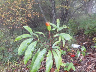 秋色に変身中のマムシグサ