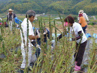 6月に植えた金ゴマは台風で曲がったり日照不足で成長に影響があったものの、刈り取り作業を体験することが出来、また既に収穫、乾燥されたものをフルイやトウミノ(唐箕)に掛けてゴミ除去等一連の作業を体験した。