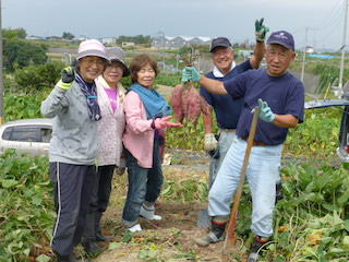 これまで雨が多かったこの講座、今回も台風のため天気予報は雨だったが好天気の下に行われた(全作業終了後に降雨)。