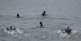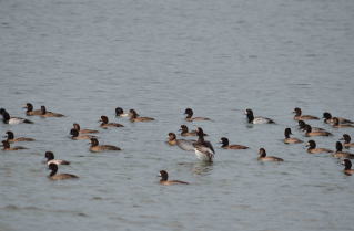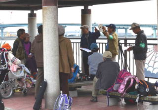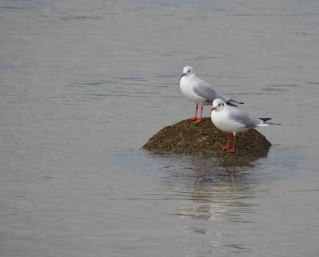 海岸線に遊歩道が設けてあり、もらった資料に「この甲子園浜は、阪神間に残された数少ない砂浜のある海岸で、多くの鳥が集まる探鳥地として有名です。秋から春にかけてカモメ類をはじめ、ミサゴなどの猛禽類も見られます。」の説明文がありその通り海面にはたくさんの海鳥がたたずんでいて、講師の方がスコープで鳥をとらまえ名前・特徴を教えてくれる。・・・双眼鏡ではよくわからないし、鳥もじっとしててくれるといいのに動き回るので余計わからない。