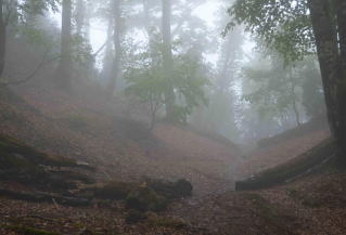 あいにく2日目の昼食後より雨となりましたが森にとっては久し振りの慈雨で、幻想的な白い霧が加わった森のシーンは2日間のトレッキングの終幕として印象深いものとなりました。リピーターを含め多くの受講生がドラマ「芦生の森」にカーテンコールを。