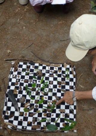 また、自然に在る小さな物を集めて格子状の布の上に並べて観察。それらはバラバラな存在ではなく、関係を持っており、また同じ物でも変化し多様であること、等を学習した。
