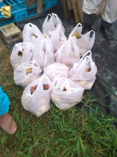 帰り際に収穫したジャガイモをいただき帰路につく途中で雨がポツポツ