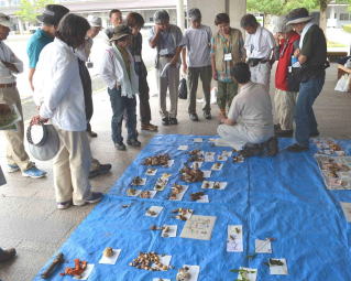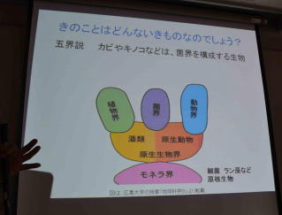 今年の京都は少雨で、きのこの「出」が悪いのでは?と西田先生が心配しておられたそうですが、幸いにもつい最近2日間ほど若干降ったので少し期待できそう、ということで講座がスタートしました。
