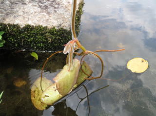 池畔を散策すること数十分。やっと先生と合流、さっそく深泥池の説明。深泥池成り立ち、水質について、不思議な浮島のできた理由、珍しい水生植物について。又、ここでも鹿の食害、なら枯れ、外来種の進出に頭を悩ましていること等について、難しい内容を分かりやすく解説して頂いた。