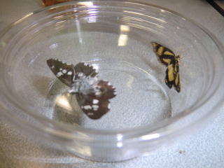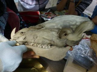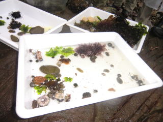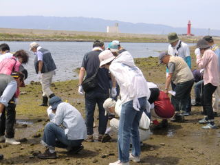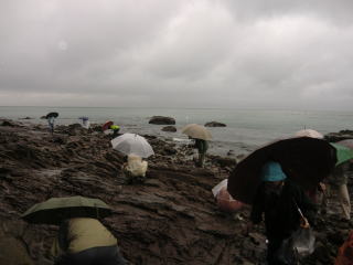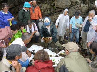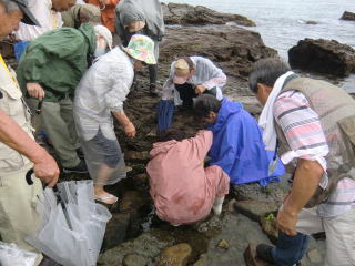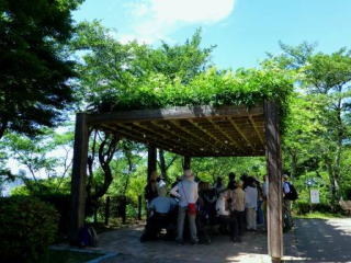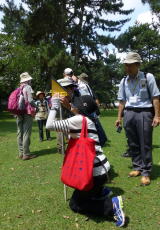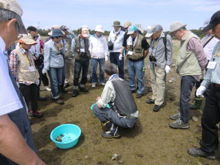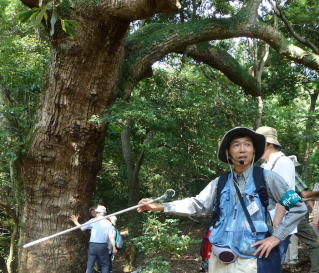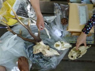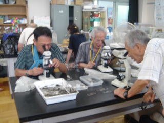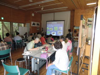 午後の野外活動は、姿は見せないものの存在を示す生態状況を観察し、涼しい藤棚の下に移って、貴重な標本をもとに熱いお話、Q&Aで盛り上がりました。