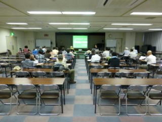 ビオトープとは・・・午前中の木村先生の講義。あまりの暑さでプロジェクターが熱中症でダウンのハプニングも