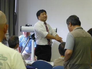 自ら天文台長を務め各地に出向いて分かり易く語られる中島先生により、太陽、月、星についてお話を聞き、また持参された天体望遠鏡で観察模擬体験を行なった。