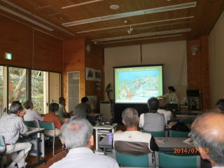 午前は、森の館で地球史年表、冥王代から始まり両生類、爬虫類の進化まで、生態クイズを交えて楽しく学習。