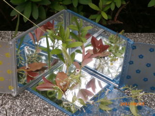 ネイチャーゲームを体験。はがき大の鏡を鼻の下に位置し空や木々を見る。まるで空を散歩してるような不思議な感覚、色々な形の自然なものを採取。即席万華鏡を作る。カモフラージュ探し等々。