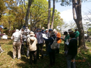 つまり基本的なルール「フィールドマナー」のことなんです。そして双眼鏡の使用方法を教わり、いよいよ野鳥観察へ。大勢で山道を歩いたせいか、野鳥のご機嫌を損ねてしまい、声はすれども姿は見えず。全員で見ることが難しかった。鳥合わせの結果は14種(さえずり又は姿)。