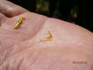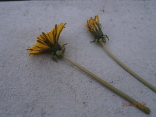 タンポポの花びら、それぞれに花びら・おしべ・めしべ・がく・子房があります。小さな花が100〜200個集まってできています