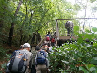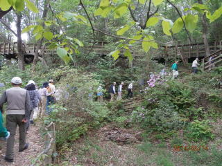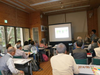 大阪府に残された森林として唯一の天然記念物ブナ林についての講義を受ける。和泉葛城山のブナ林は、本州南限圏かつ低標高858mにある。大阪府域に残された貴重な自然環境のシンボル的な存在。ブナ林は、緑の堤防、緑のダムとも言われ、沢山の水を蓄えます。炭酸ガスを吸収して酸素を生産することで、地球の温暖化を防ぐ力も持っている。ブナ林の保全とは、今太平洋側のブナ林の衰退が懸念されている。自然のサイクルが機能していない。地球温暖化などの影響もあるがブナ林保護の為の取り組みがされている。