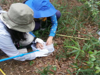 午後は、お待ちかねの昆虫採集。昆虫網、虫かごを持って、森の中へ。思っているより昆虫を見つけられなく歓声は上がるが、獲物はなかなか網に入ってくれません。採集した昆虫や蝶を持ち寄り、図鑑を見ながら照合しました。